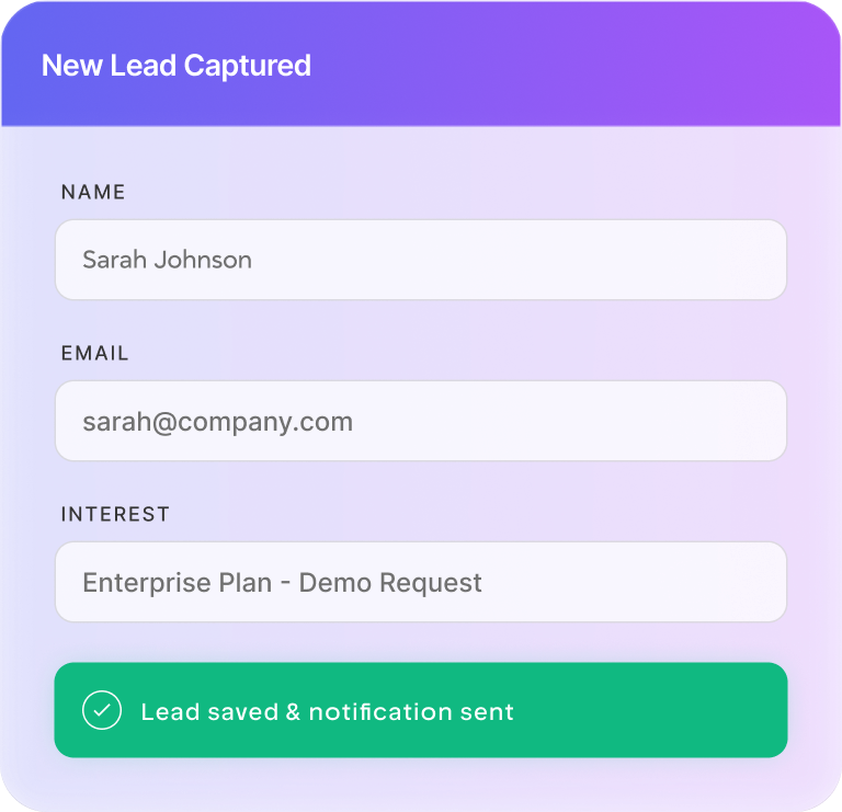 No developers needed. Just copy, paste, and start capturing leads.