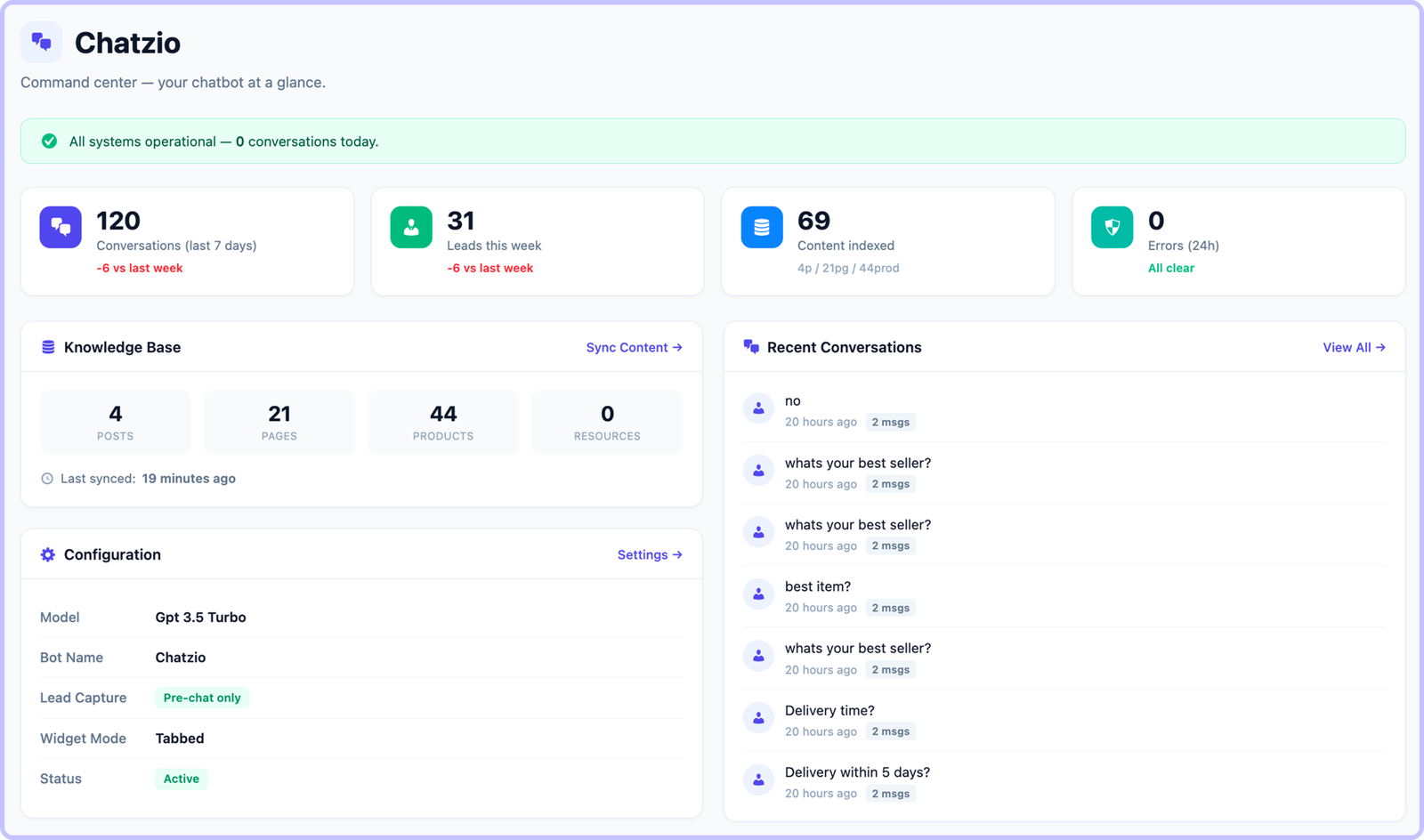 Every visitor who chats becomes a lead. Chatzio naturally collects names, emails, and phone numbers during the conversation — no annoying forms needed.