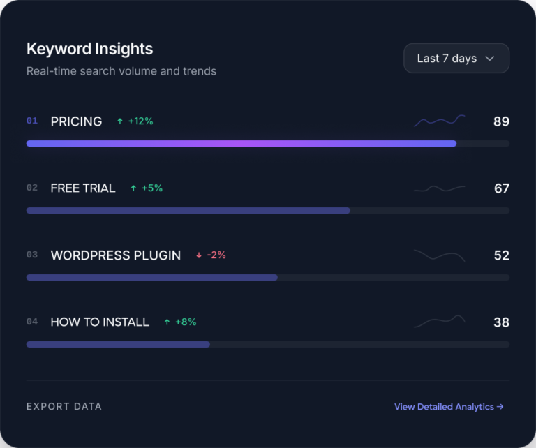 Chatzio analyzes every conversation to show you the exact words and phrases your customers use. Discover what they're looking for, what confuses them, and what makes them buy.